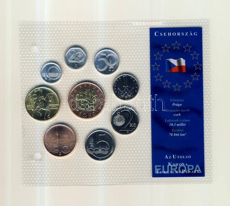 Description: Csehország 2001-2004. 10h-50K 9klf darab "Az utolsó Korona forgalmi pénzek" szettben T:1