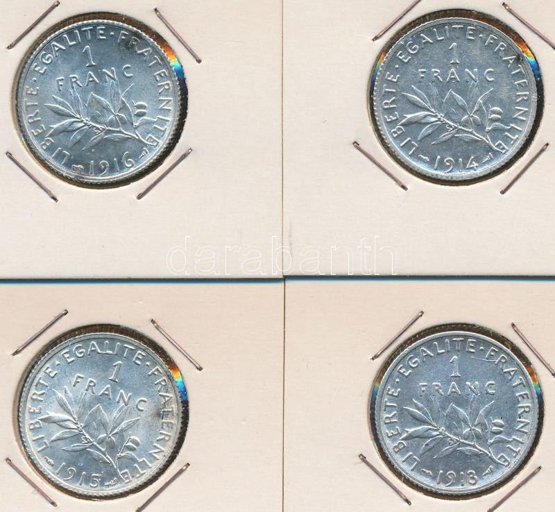 Franciaország 1913/14/15/16. 1Fr Ag (4x) mindegyik fóliatokban T:1,1-,2