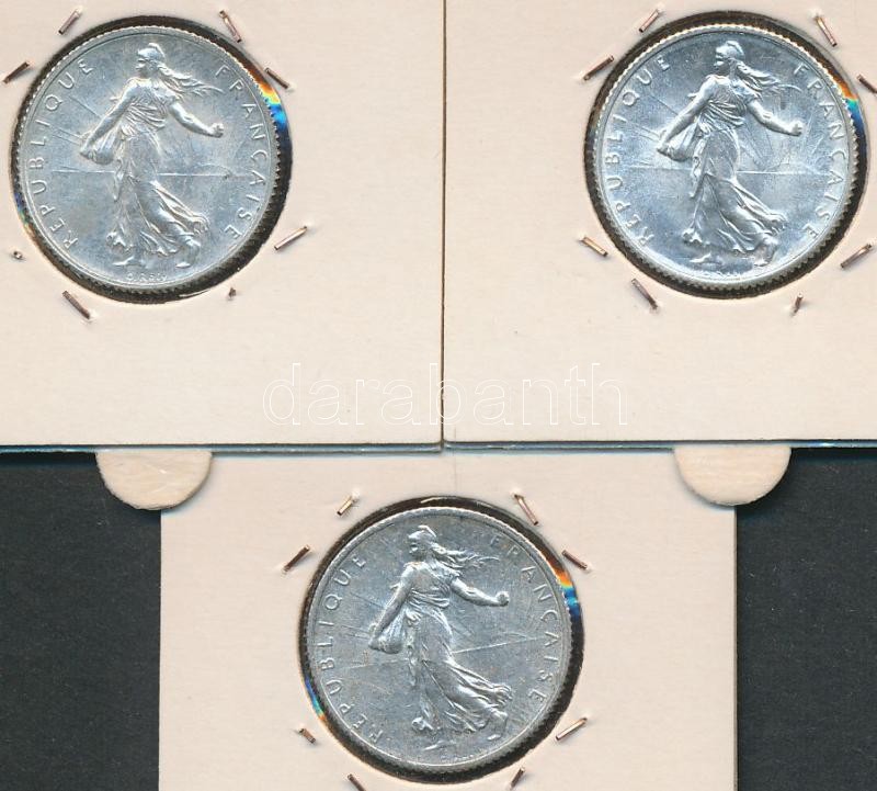Franciaország 1917/18/19. 1Fr Ag (3x) mindegyi fóliatokban T:1,2