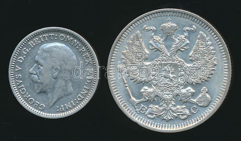 Nagy Britannia 135. 3p Ag + Oroszország 1914. 20k Ag T:2,2-