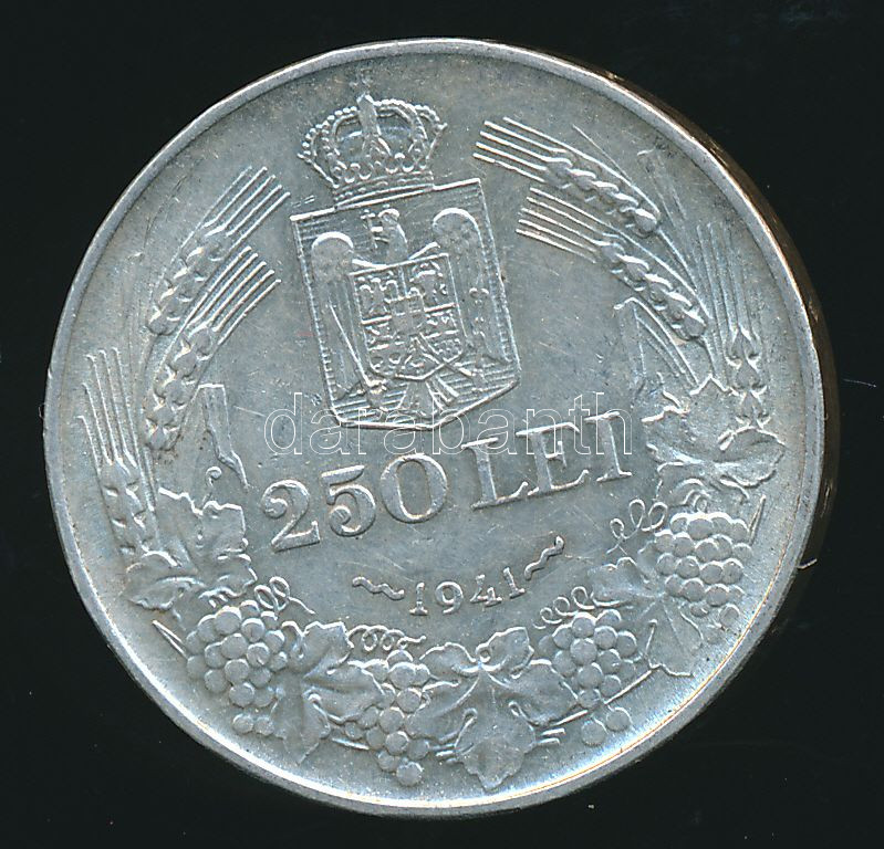 https://www.darabanth.com/en/155-Online-auction/155.0/Numismatics/Foreign-coins~5000351/Romania-1941-250L-Ag-T2--3Cbr3ERomania-1941-250-Lei-Ag-CVF~II484391