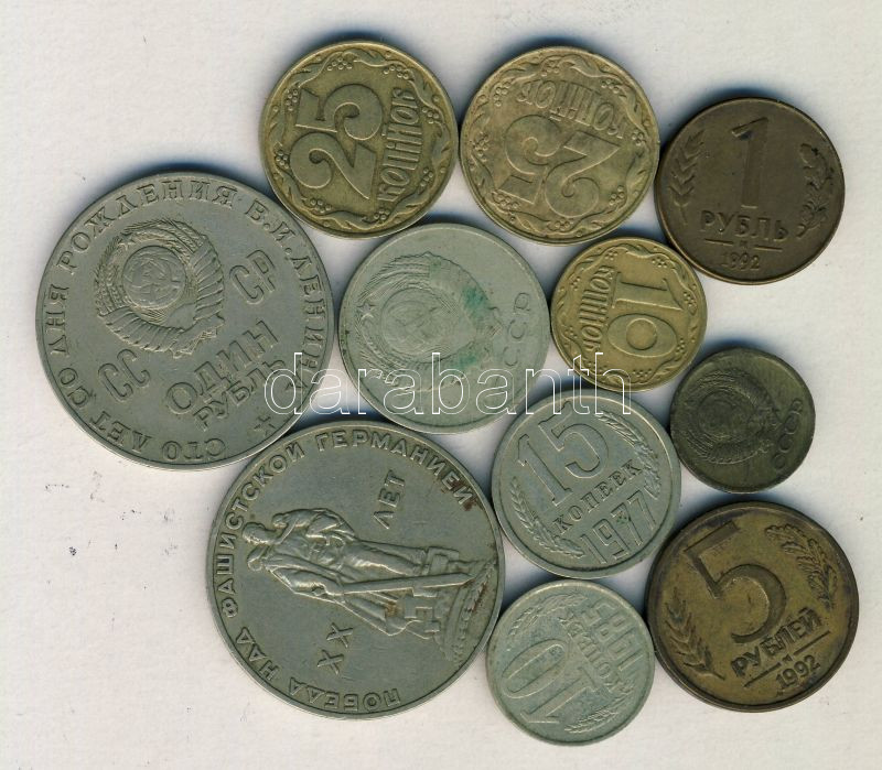 https://www.darabanth.com/en/155-Online-auction/155.0/Numismatics/Foreign-coins~5000351/Szovjetunio-1961-92-1k-10R-osszesen-11-kulonfele-penzerme-T2-3~II420513