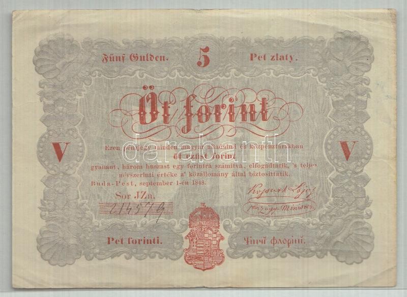 1848. 5Ft "Kossuth bankó" T:II-/III+