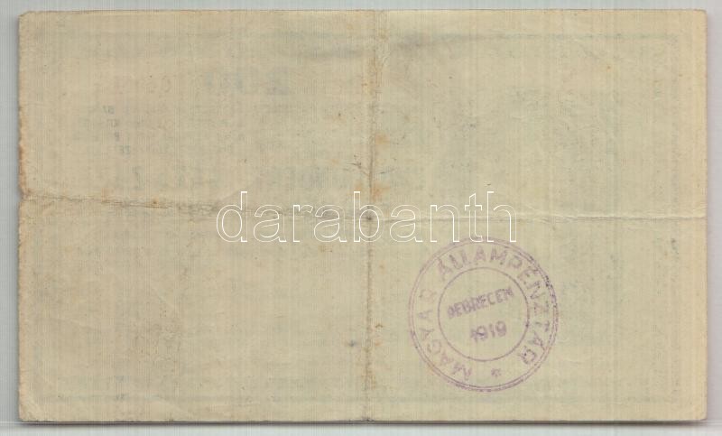 1918. 200K "A 1003" sima hátlappal és a hátlapon lila "Magyar Állampénztár Debrecen 1919" felülbélyegzéssel T:III