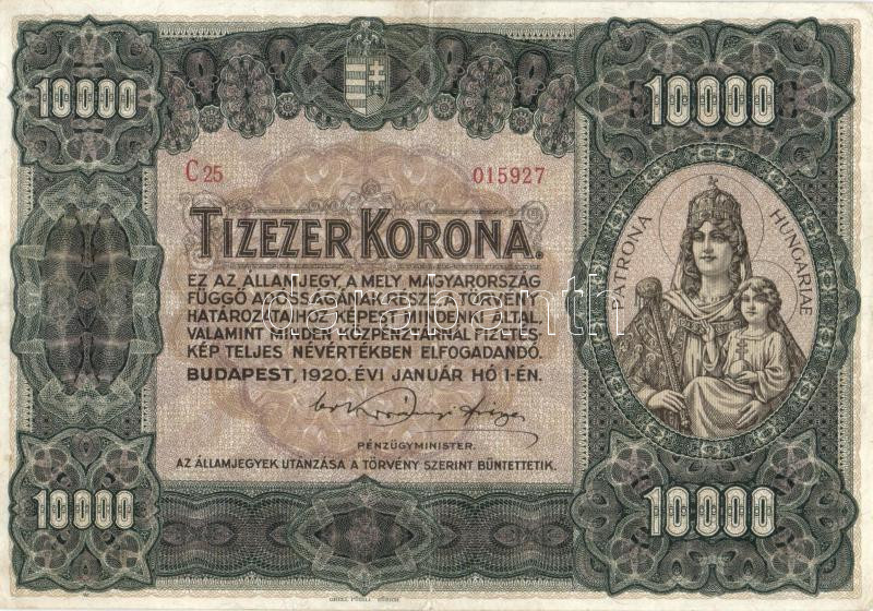 https://www.darabanth.com/en/155-Online-auction/155.0/Numismatics/Hungarian-Banknotes~5000346/1920-10000K-TII-hajtasnal-kis-beszakadas~II486596