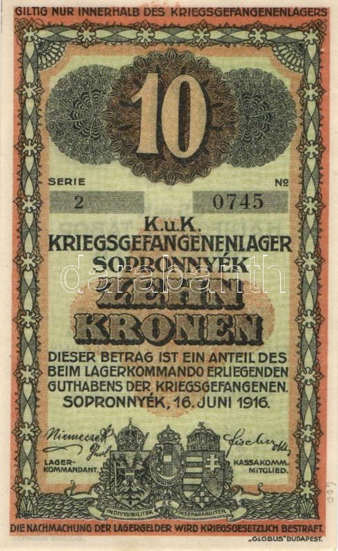 https://www.darabanth.com/en/155-Online-auction/155.0/Numismatics/Hungarian-and-foreign-emergency-notes-and-coins-tokens~5000345/Sopronnyekhadifogolytabor-1916-junius-16-10K-TI-~II486610
