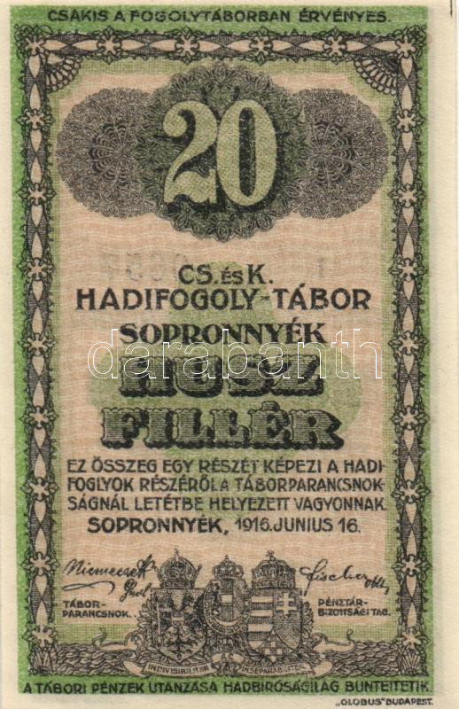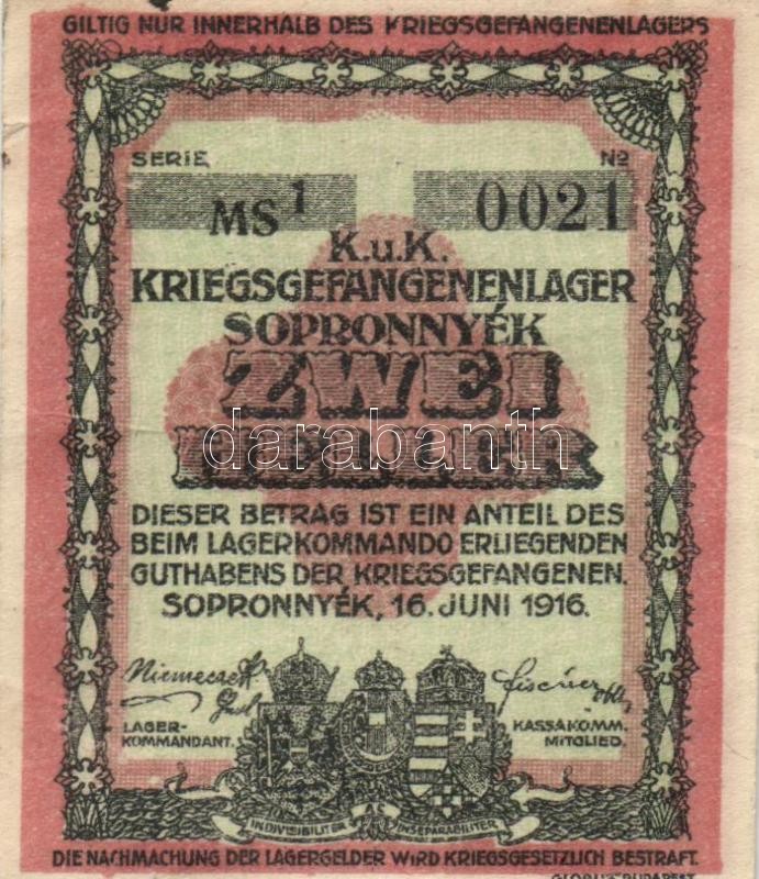 https://www.darabanth.com/en/155-Online-auction/155.0/Numismatics/Hungarian-and-foreign-emergency-notes-and-coins-tokens~5000345/Sopronnyekhadifogolytabor-1916-junius-16-2f-plus-20f-TII-I~II486608
