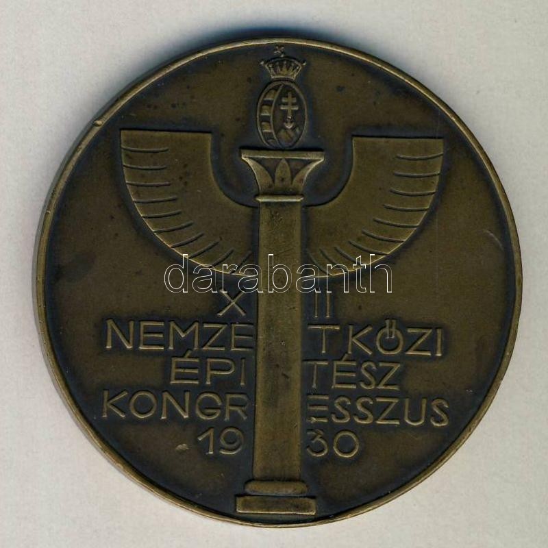 1930. "XII. Nemzetközi Építész Kongresszus-Budapest" Br plakett (d=61mm) T:2