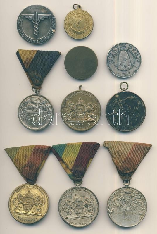 1930-as évek: 10db sportérem, közte "Budapest Székesfőváros Versenydíj... https://www.darabanth.com/en/155-Online-auction/155.0/Numismatics/Hungarian-commemorative-medals-plaques-badges~5000348/1930-as-evek-10db-sporterem-kozte-Budapest-Szekesfovaros-Versenydija-arany-ezust-bronz-~II484936