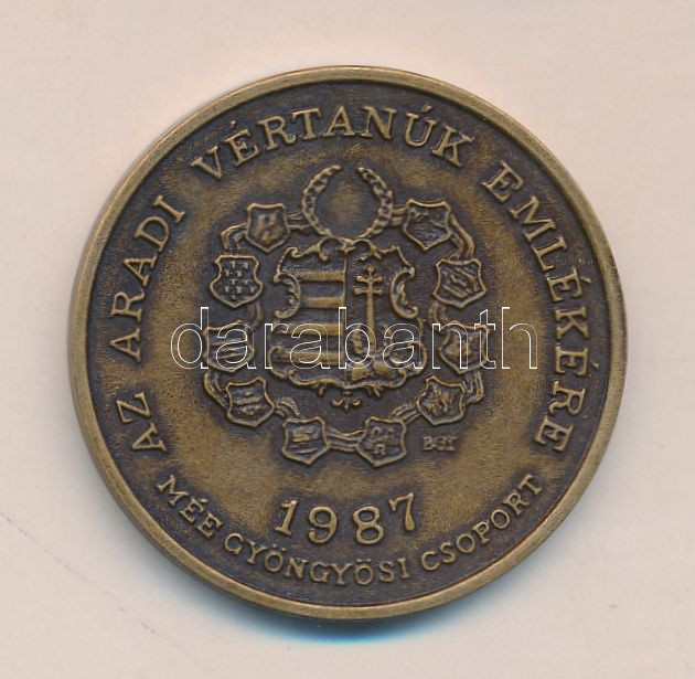 1987. "MÉE Gyöngyösi Csoport-Az Aradi Vértanúk Emlékére / Nagysándor József" Br emlékérem szign:B.GY (d=42mm) T:BU