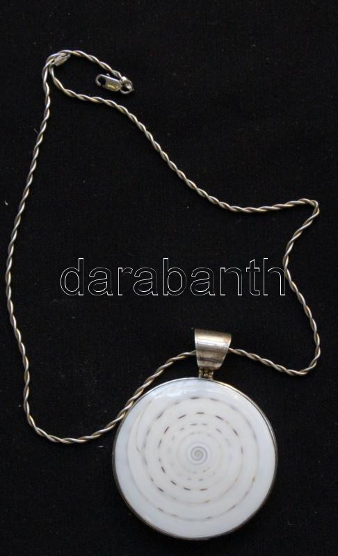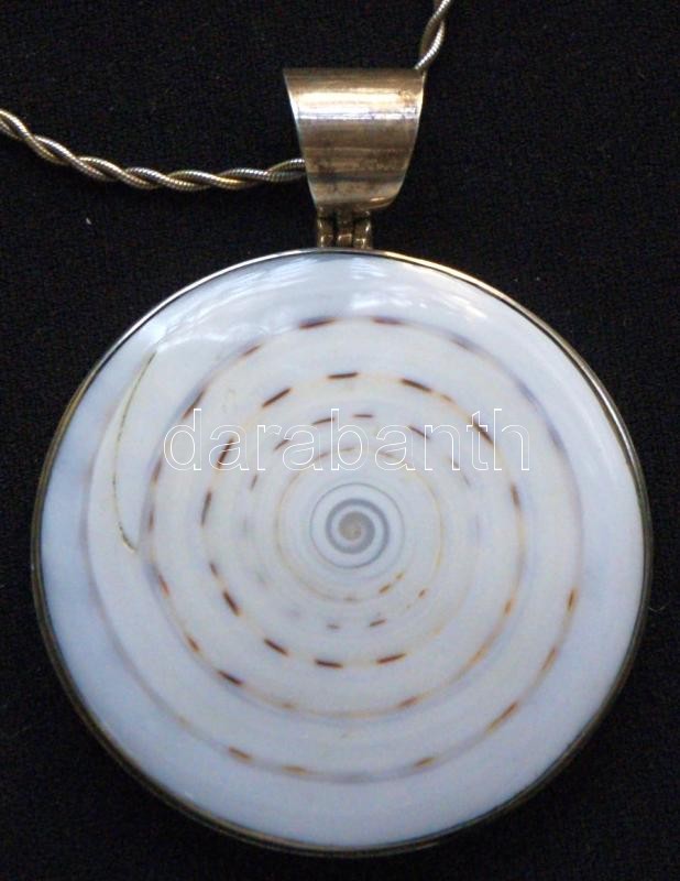 Nagyméretű tengeri csiga medál ezüst (Ag) kerettel és lánccal br.: 37,...