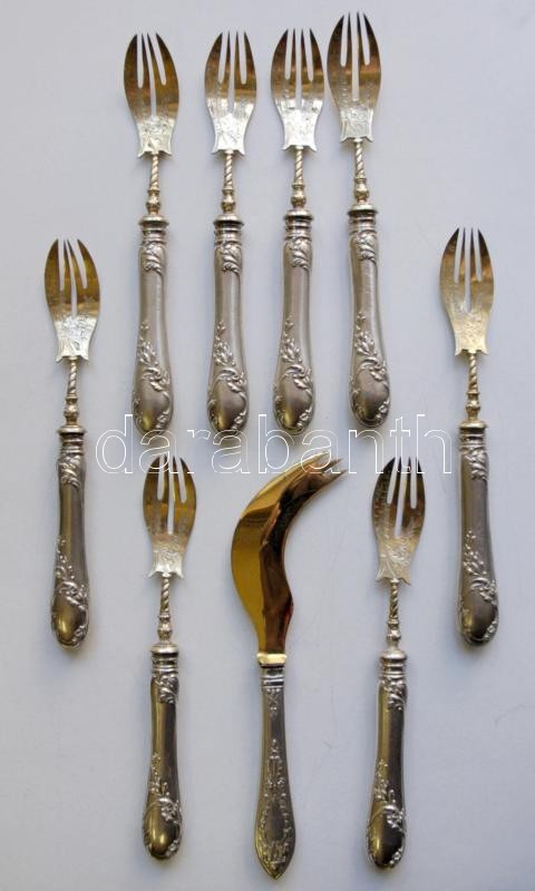 Nagyon szép növényi ornamentika vésettel ellátott ezüst(Ag) villa kész... https://www.darabanth.com/en/155-Online-auction/155.0/Numismatics/Jewellery~5000338/Nagyon-szep-novenyi-ornamentika-vesettel-ellatott-ezustAg-villa-keszlet8db-es-1db-hozza~II486594