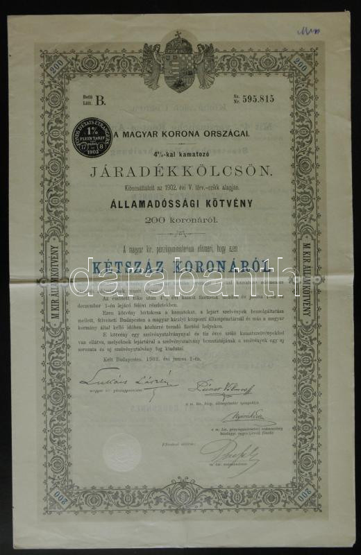 https://www.darabanth.com/en/155-Online-auction/155.0/Numismatics/Shares-Securities-and-Tickets~5000344/1903-Magyar-Korona-Orszagai-425-kal-kamatozo-Jaradekkolcson-allamadossagi-kotvenye-200K-r~II485550
