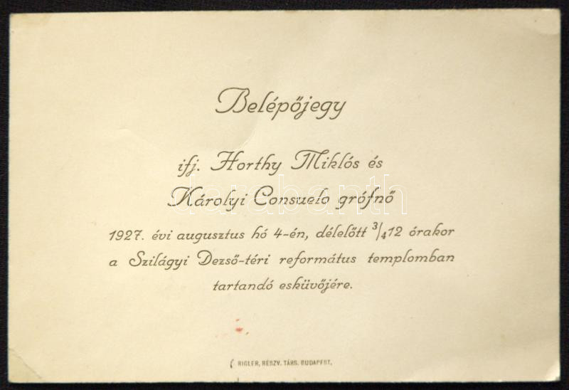 https://www.darabanth.com/en/155-Online-auction/155.0/Other-collectibles/Historical-documents-manuscripts~5000310/1927-Belepojegy-ifj-Horthy-Miklos-es-Karolyi-Consuelo-grofno-eskuvojere~II476879