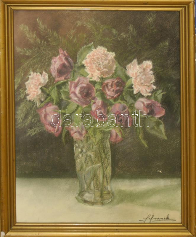 Safranek jelzéssel: Virág-csendélet. Pasztell, papír. Jelzett. Keretbe...