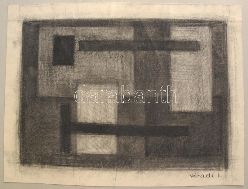 Váradi I.: Kompozíció, szén-papír, jelzett, kartonlapra ragasztva 50x7...