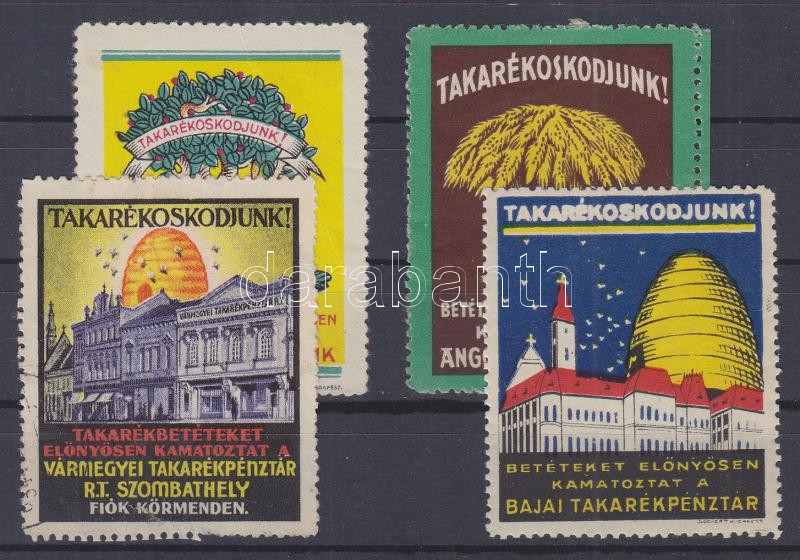 1934 "Takarékoskodjunk" 4 db klf levélzáró (erős betapadásnyom)