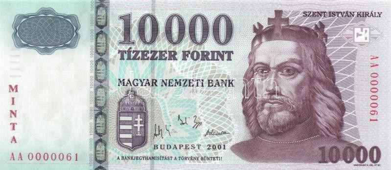 2001. 10.000Ft "MINTA" felülnyomással "AA 0000061" sorozatszámmal! T:I