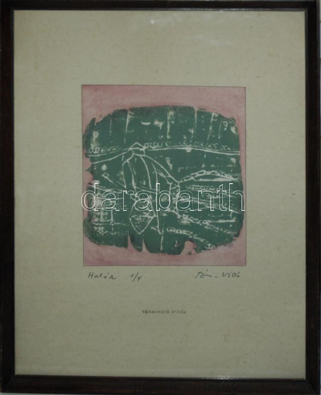 Tóth-Vissó Árpád (1921-2001): Halász, Linómetszet, papír, 1/4. Elején ...