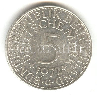 https://www.darabanth.com/en/157-Online-auction/157.0/Numismatics/Foreign-coins~500126/NSZK-1972G-5M-Ag-T2-k-3Cbr3EGermany-Federal-Republic-1972G-5-Mark-Ag-CXF-k~II497037