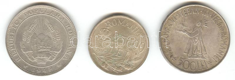 Description: Románia 1941. 500L Ag "Besszarábia" T:3 + 1946. 25.000L Ag T:2- + 1948. "Nicolae Balcescu" Ag emlékérem 24,75g T:2-