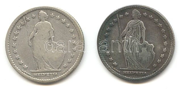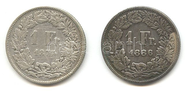 Svájc 1877/1886. 1Fr Ag (2x) T:2-,3