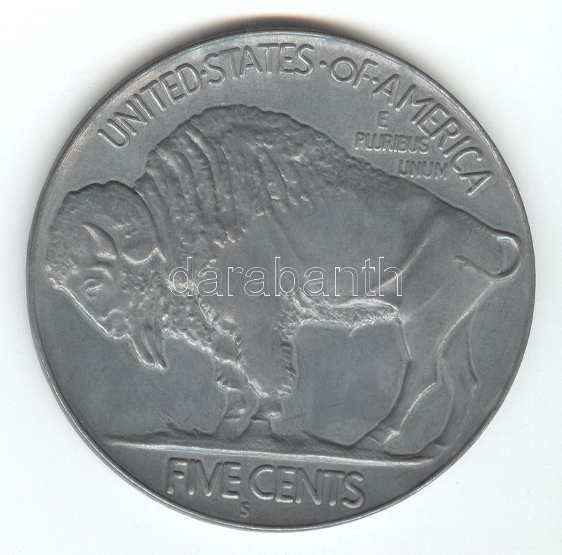 USA 1913. Buffalo cent bronzolt Alu emlékplakett (75mm) T:2
