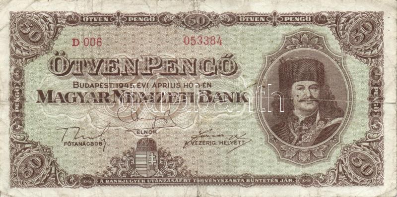 1945. 50P + 500P hamis bélyeggel T:III
