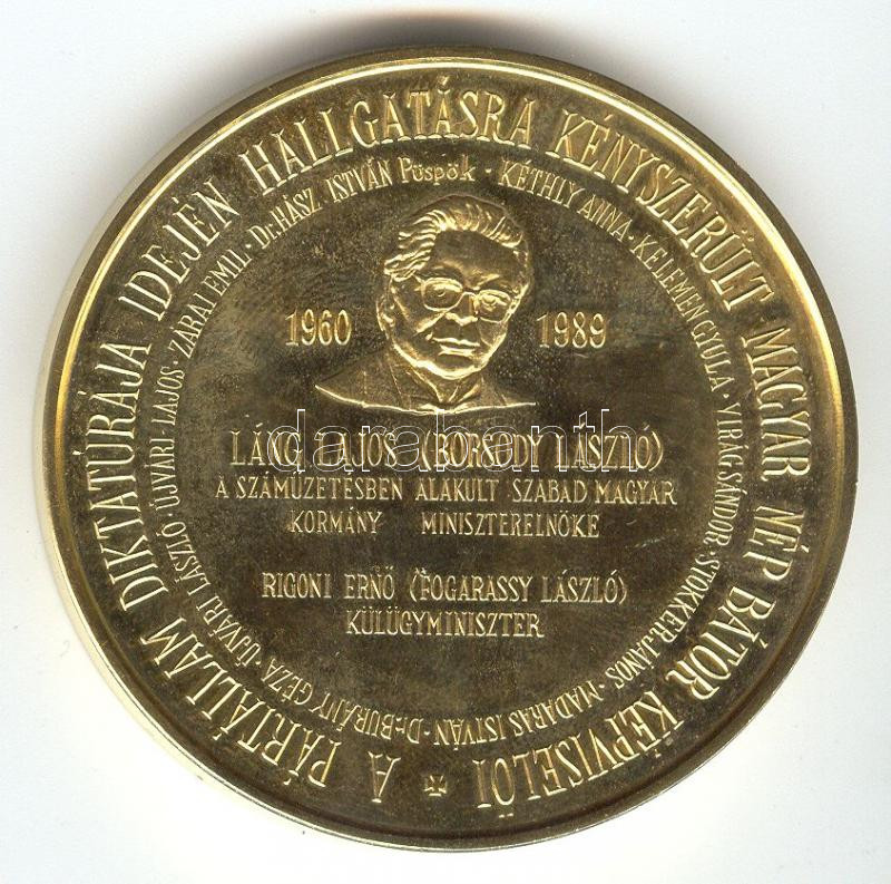 1989. "A száműzetésben 1960-1989 között működő szabad magyar kormány emlékére" nagyméretű piefort aranyozott emlékérem (65mm) dísztokban T:exPP