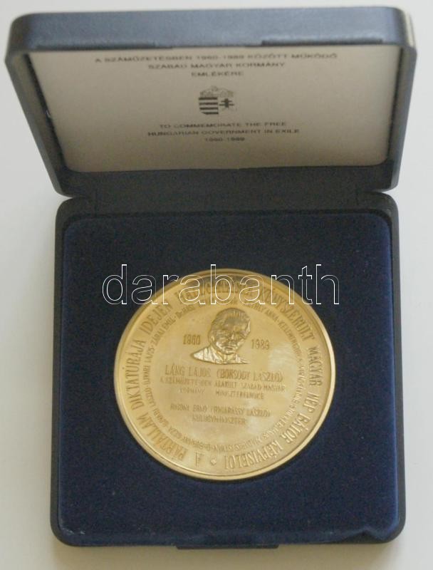 https://www.darabanth.com/en/157-Online-auction/157.0/Numismatics/Hungarian-commemorative-medals-plaques-badges~500123/1989-A-szamuzetesben-1960-1989-kozott-mukodo-szabad-magyar-kormany-emlekere-nagymeret~II495398