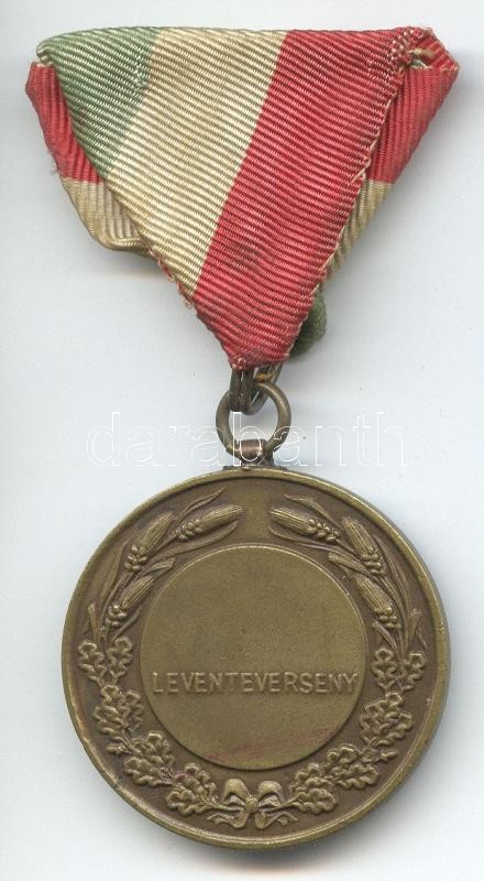 ~1937. "Leventeverseny" Br díjérem (41mm) mellszalaggal szign.: Berán ...