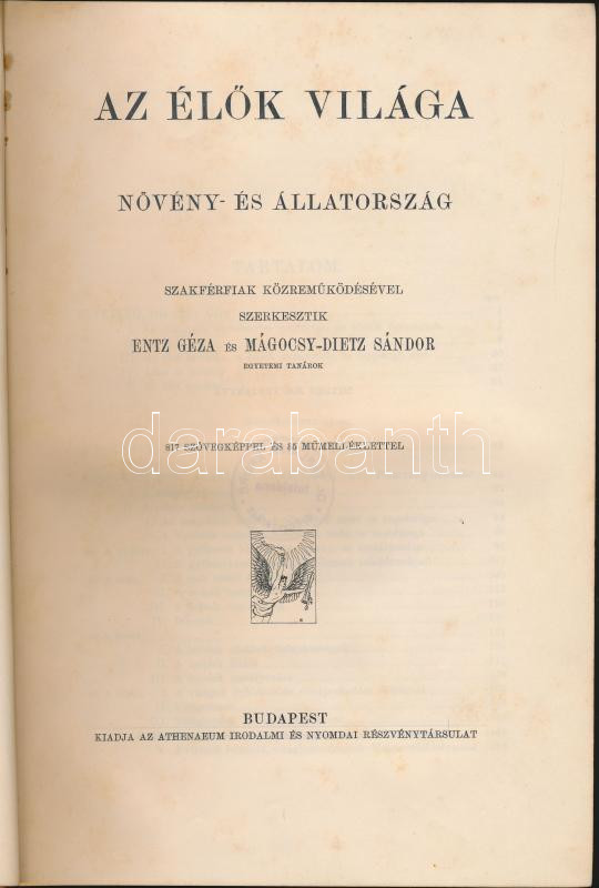 Entz Géza, Mágocsy - Dietz Sándor: A műveltség könyvtára- Az élők vilá... https://www.darabanth.com/en/157-Online-auction/157.0/Other-collectibles/Books-Other-rarities~500025/Entz-Geza-Magocsy--Dietz-Sandor-A-muveltseg-konyvtara-Az-elok-vilaga-noveny-es-al~II492702