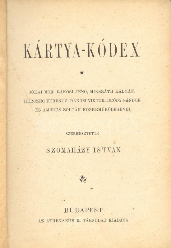 https://www.darabanth.com/en/157-Online-auction/157.0/Other-collectibles/Books-Other-rarities~500025/Szomahazy-Istvan-Kartya-kodex-Athenaeum-Budapest-1898-212p-Kartyaleirasok-Jokai-mor-~II496218
