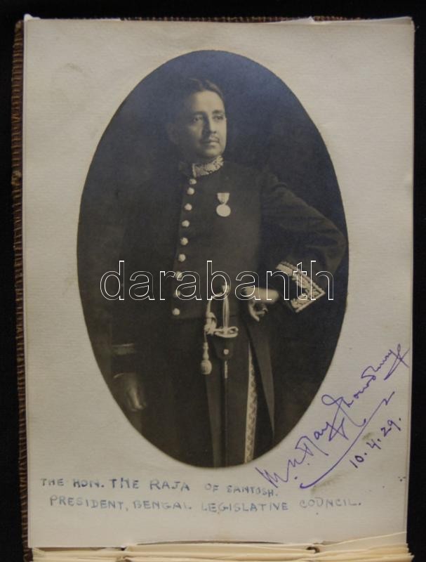 1930 Indiai politikusok és uralkodók aláírásainak gyűjteménye egy fényképpel, bőrkötéses füzetben. Az aláírásokat Bartha Gyula és Sulkowky Zoltán a világot megkerülő motorosok gyűjtötték útjuk során. / Collection of Indian royalties and policticans. Original autographs and one photo of 9 mahrajas and other notabilities. In leather covered booklet 20x14 cm