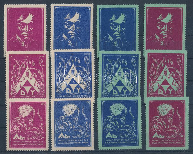 1927-1928 12 darab Gárdonyi Szabó Kálmán Ady Endre levélzáró 4 színváltozatban