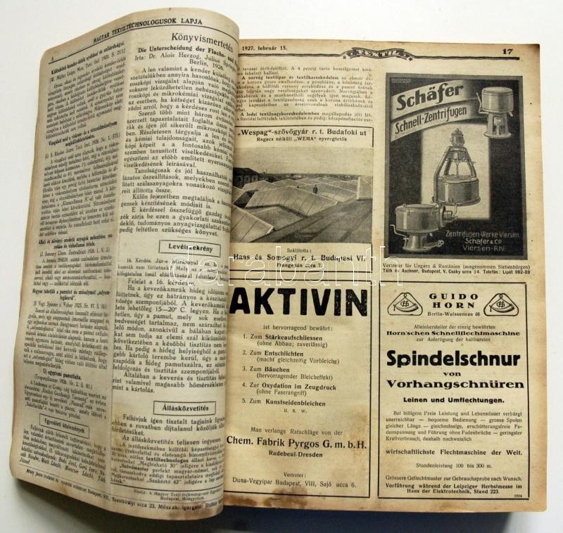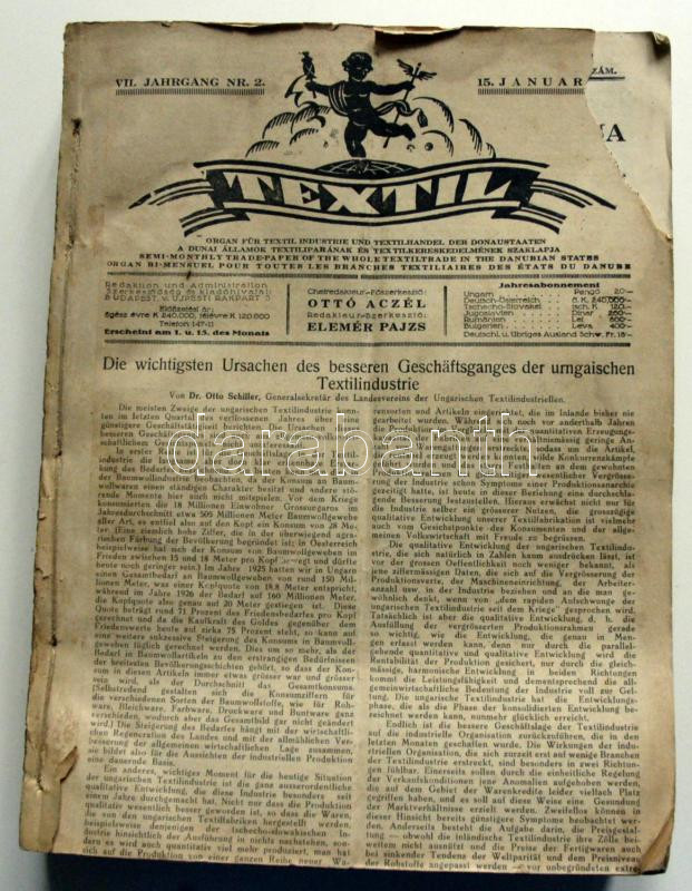 1927 a Textil című magyar német nyelvű textil ipari folyóirat összefű...