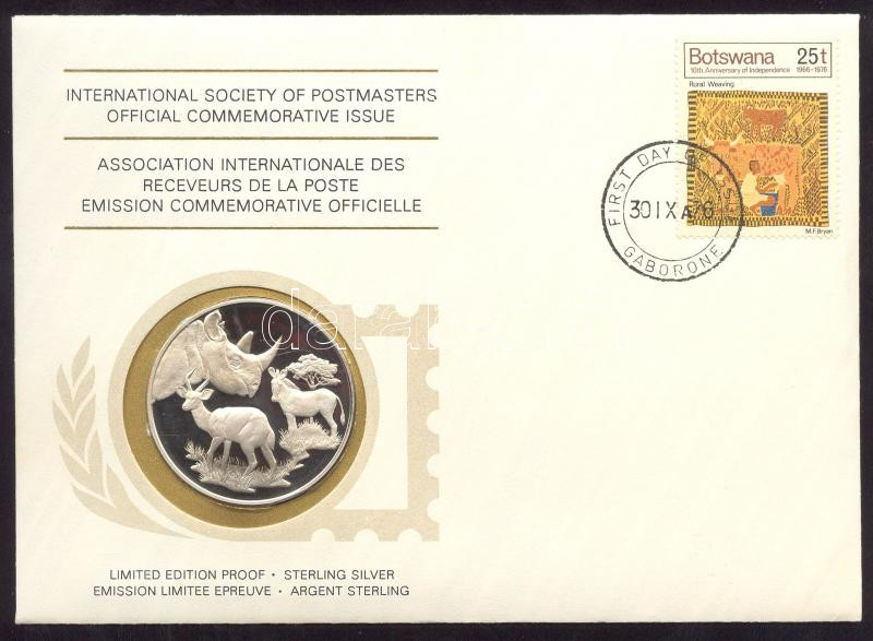 Botswana 1976. "Függetlenség 10. évfordulója" a Postamesterek gondozás... https://www.darabanth.com/en/158-Online-auction/158.0/Numismatics/Envelopes-with-Coins-and-Banknotes~600116/Botswana-1976-Fuggetlenseg-10-evforduloja-a-Postamesterek-gondozasaban-kiadott-Ag925-eml~II499675