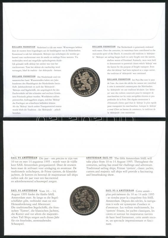 Hollandia 1995. Ecu "Sail Amsterdam 1995" + 1997. "Holland Promotion" 2db érmés boríték alkalmi bélyegzős bélyegpárral, hátoldali ismertetővel T:PP