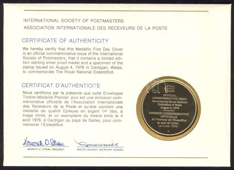 Great Britain 1976. "The Royal National Eisteddfod" Ag(925) medallion (20g) / International Society of Postmasters - Medallic First Day Cover with Dutch information C:PP