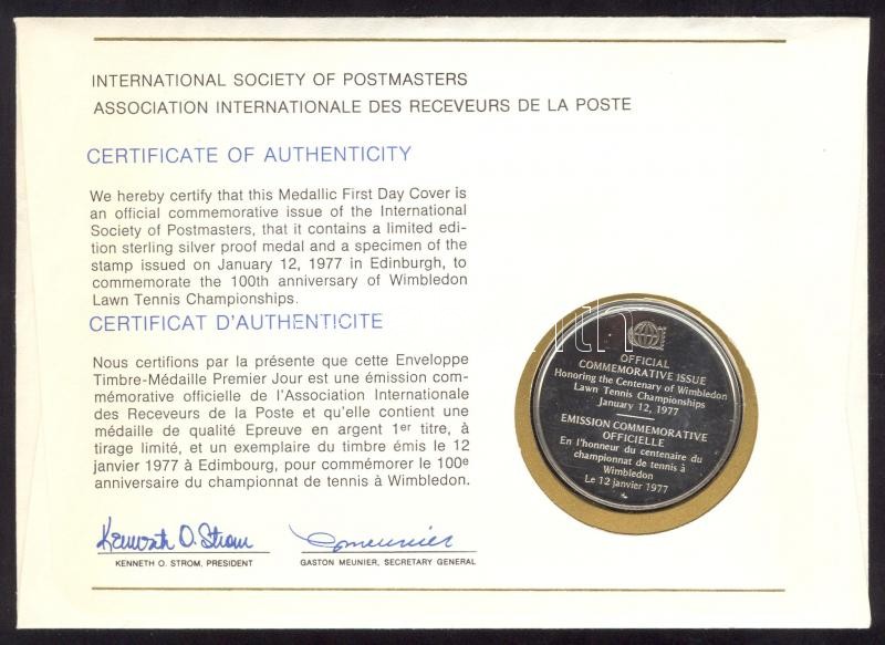 Nagy Britannia 1977. "Wimbledoni tenisztorna 100.évfordulója" a Postamesterek gondozásában kiadott Ag(925) emlékérem 20g érmés, bélyeges borítékon, brit bélyeggel, elsőnapi bélyegzővel, holland nyelvű ismertetővel T:PP