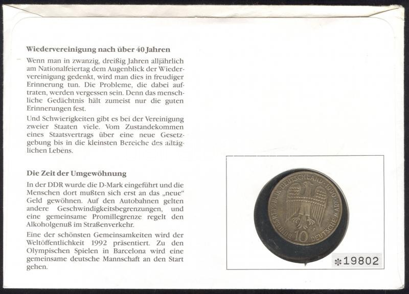 Description: Németország 1990F 10M Ag "I. Barbarossa Frigyes" bélyeges érmés borítékon elsőnapi bélyegzővel, hátoldali ismertető tanúsítvánnyal T:1-(boríték sérült)