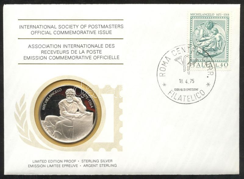 Olaszország 1975. "Michelangelo 500 éve született" a Postamesterek gon... https://www.darabanth.com/en/158-Online-auction/158.0/Numismatics/Envelopes-with-Coins-and-Banknotes~600116/Olaszorszag-1975-Michelangelo-500-eve-szuletett-a-Postamesterek-gondozasaban-kiadott-Ag925~II499556