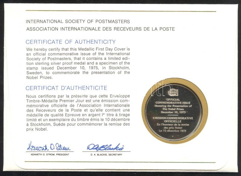 Sweden 1975. "The Nobel Prizes" Ag(925) medallion (20g) / International Society of Postmasters - Medallic First Day Cover with Dutch information C:PP