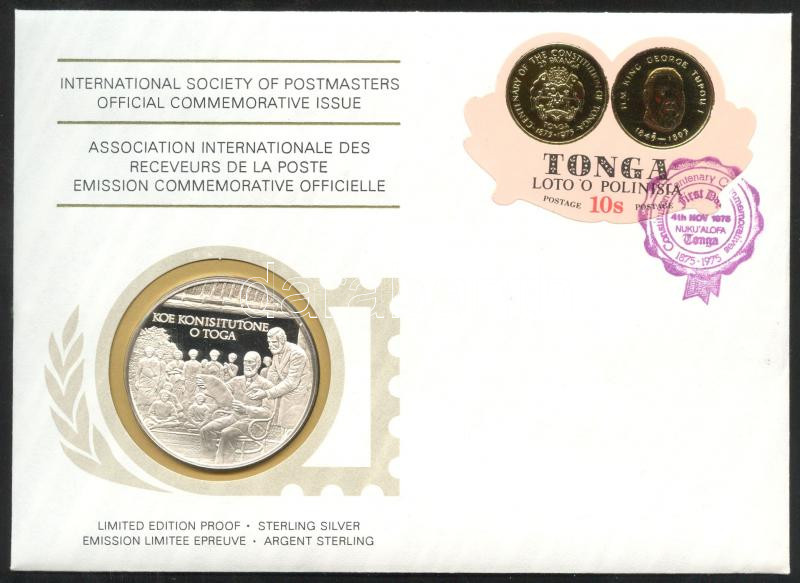 Tonga 1975. "Tonga Alkotmánya 100 éves" a Postamesterek gondozásában k... https://www.darabanth.com/en/158-Online-auction/158.0/Numismatics/Envelopes-with-Coins-and-Banknotes~600116/Tonga-1975-Tonga-Alkotmanya-100-eves-a-Postamesterek-gondozasaban-kiadott-Ag925-emlekerem~II499592