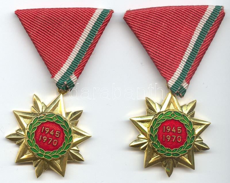 https://www.darabanth.com/en/158-Online-auction/158.0/Numismatics/Faleristics-medals-orders-badges~600110/1970-Felszabadulasi-Jubileumi-Emlekerem-2x-kituntetes-mellszalaggal-T1-~II487230