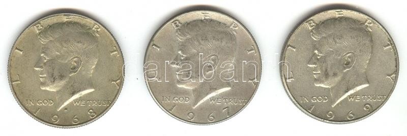 Amerikai Egyesült Államok 1967/68D/69D. 1/2$ Ag "Kennedy" (3x) T:2-