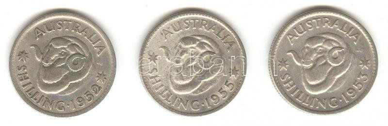 Ausztrália 1952,53,55. 1 Sh Ag (3x) T:2-,3