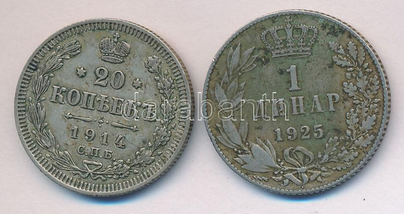 https://www.darabanth.com/en/158-Online-auction/158.0/Numismatics/Foreign-coins~600108/Cari-Oroszorszag-1914-20k-Ag-plus-Szerbia-1925-1D-Ag-T2--3Cbr3ERussiaEmpire-1914-20-kopeks-Ag-plus-S~II501315