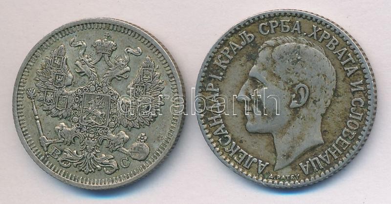 Cári Oroszország 1914. 20k Ag + Szerbia 1925. 1D Ag T:2-