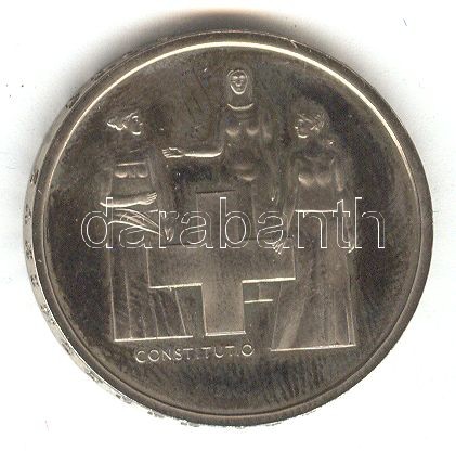S... https://www.darabanth.com/en/158-Online-auction/158.0/Numismatics/Foreign-coins~600108/Svajc-1974-5Fr-100-evfordulo-Alkotmany-modositas-disztokban-TPP-3Cbr3ESwitzerland-1974-~II499229